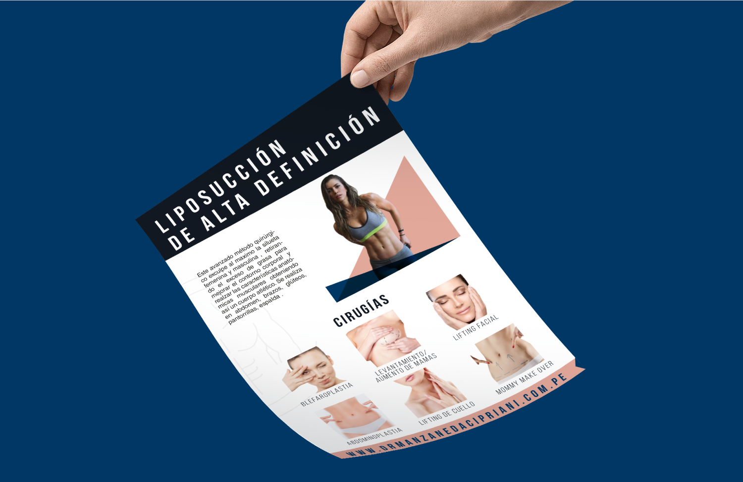 El objetivo para este proyecto fue mantener su misma línea gráfica, además, representar a través de diferentes piezas gráficas publicitarias los diferentes tipos de cirugías que se realiza. En estas piezas gráficas se logro mantener la elegancia y la modernidad.